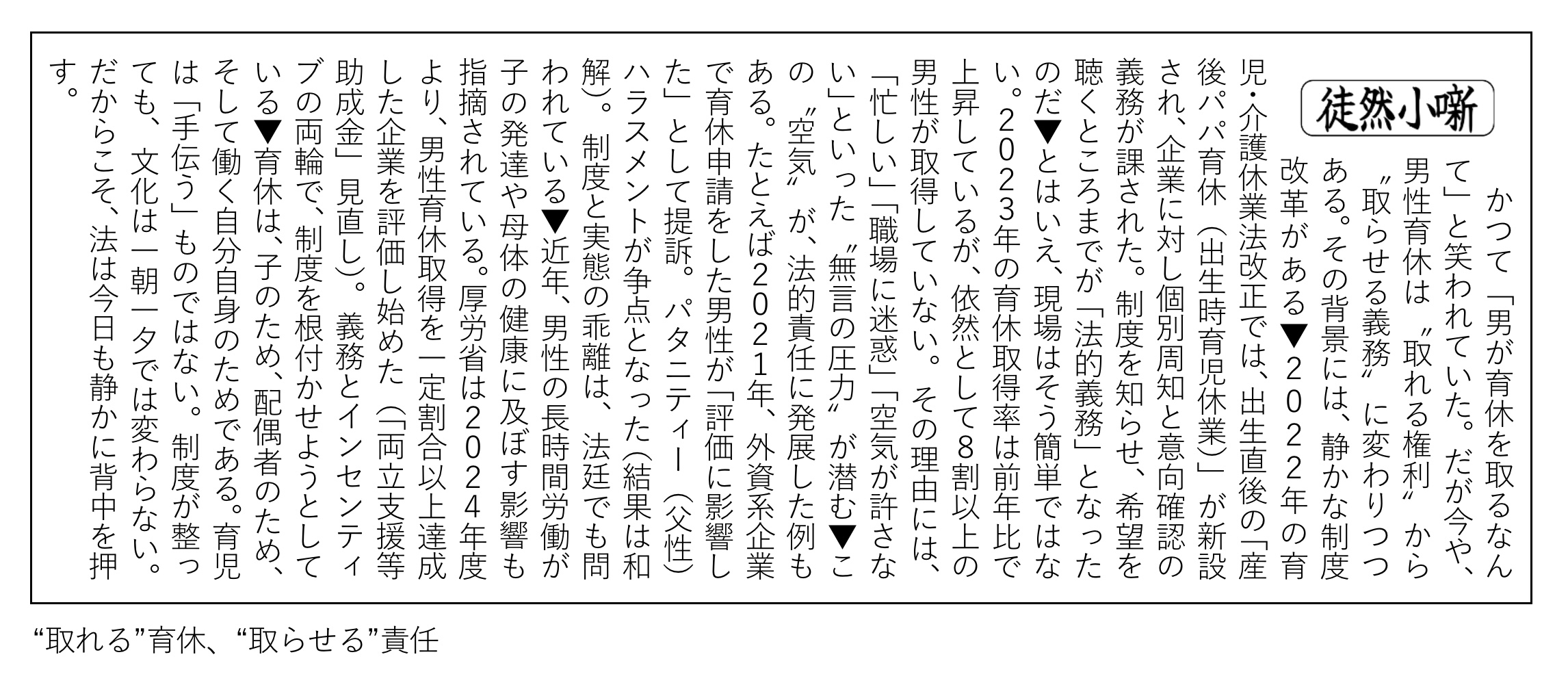 【徒然小噺】“取れる”育休、“取らせる”責任(2025.7.12)