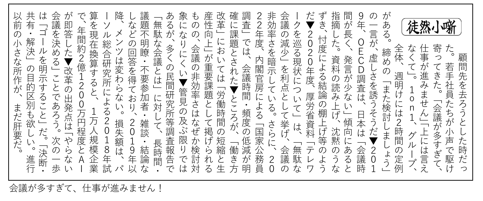 【徒然小噺】会議が多すぎて、仕事が進みません!(2025.8.7)